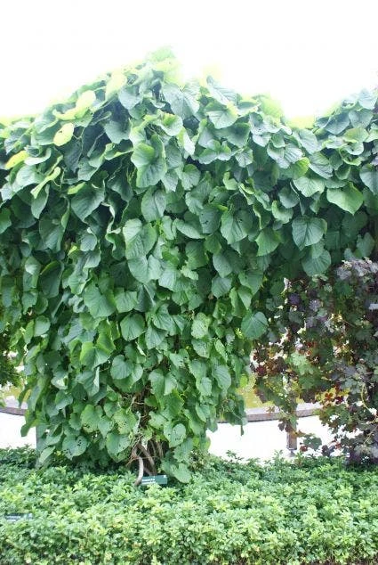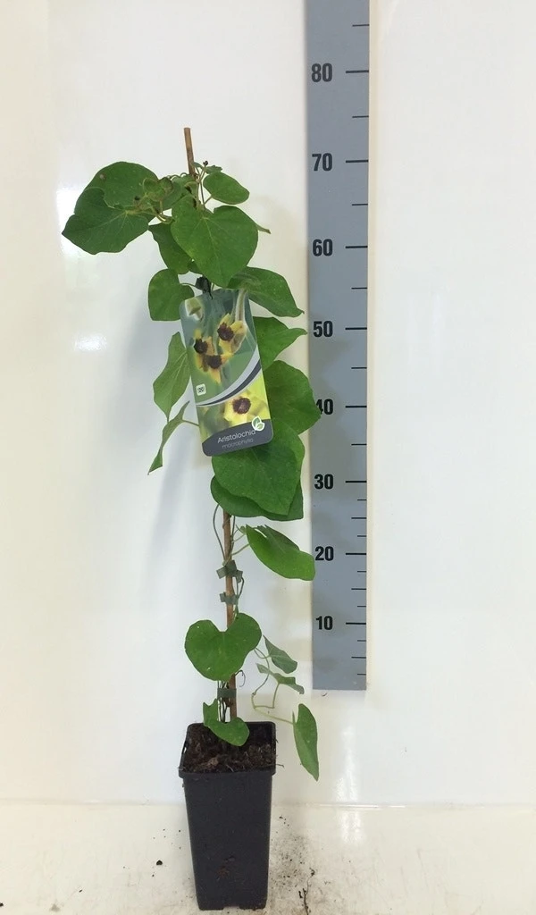 Aristolochia macropylla heeft een onopvallende bloei.