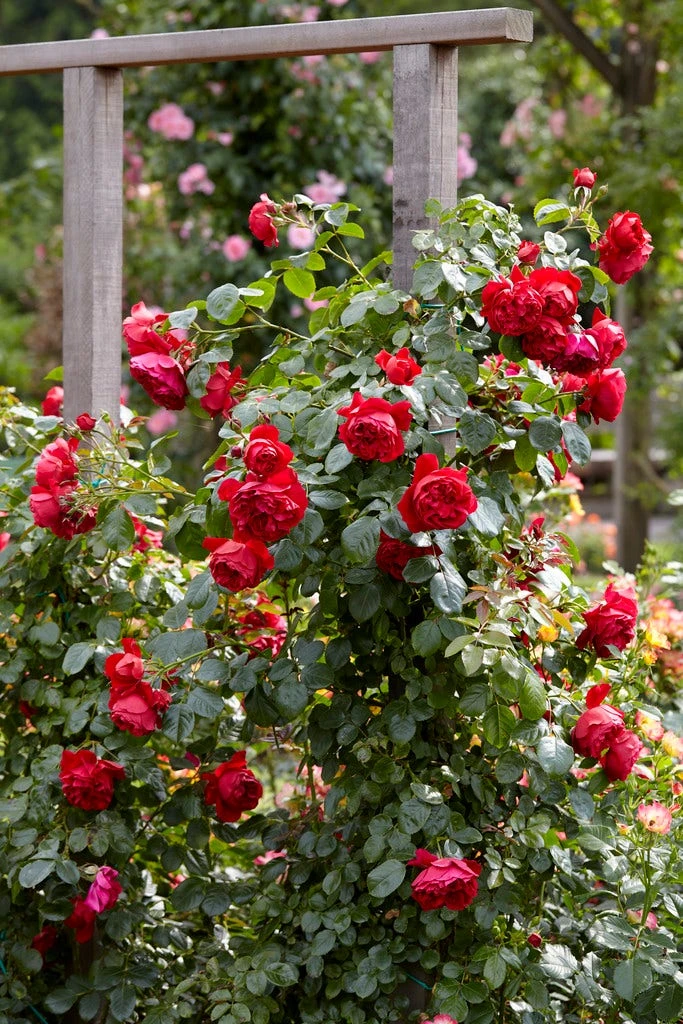Rosa Florentina is een sterke en goed winterharde klimroos. De rode gevulde bloemen tonen hun gele meeldraden. Deze mooie klimroos bloeit rijk van juni tot oktober. De rode bloemen contrasteren mooi met het donkergroene blad.